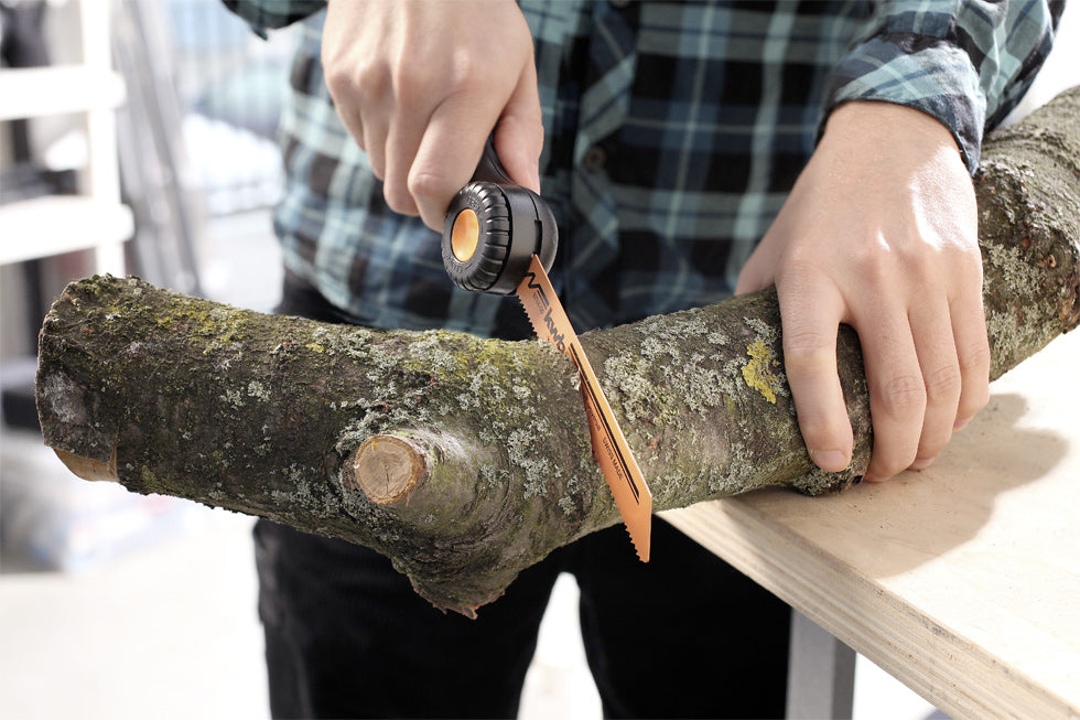 mit HSS-Bi-Metallsägeblatt 300 mm, ergonomischer 2-Komponentengriff für ermüdungsfreies Arbeiten, schneller Sägeblatt-Tausch durch Drehen des Knopfes, drei fest einzustellende Schneidpositionen durch einfaches Knopfdrücken, für alle Standard-Metallsägeblätter und Säbelsägeblätter.