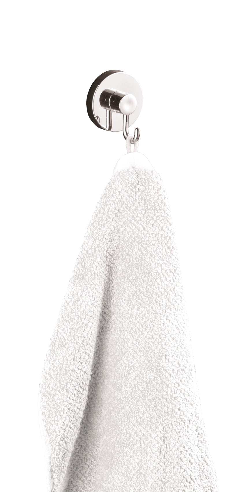 Vacuum-Loc® Produkte für Ihr Bad! Das neue Sortiment umfasst Haken, Duschabzieher, Seifenablagen, Haartrockner- und Toilettenpapierhalter, die einfach in die Adapter eingehängt und direkt belastet werden können. Die Vacuum-Loc® Serie aus hochglanzpoliertem, verchromtem Stahl bietet außerdem eine große Auswahl an geräumigen Wandablagen, die für zusätzlichen Stauraum im Bad sorgen. Mehr Ordnung im Badezimmer? Mit den glänzenden Haken aus der Vacuum-Loc® Serie kein Problem. Die verchromten Haken im praktischen 2er Set eigenen sich optimal als Kleingarderobe im Bad. Das Hakenset aus Kunststoff hält den Bademantel, die Handtücher und vieles mehr stets dekorativ griffbereit. Die Innovation in Sachen Befestigungstechnik heißt Vacuum-Loc®! Das einzigartige System ermöglicht schnelles, einfaches und sicheres Anbringen der Accessoires auf allen luftundurchlässigen und leicht unebenen Flächen. Das neuartige Vacuum-Loc® System besteht aus einer Pumpe und Befestigungs-Locs, es muss nicht gebohrt oder geschraubt werden, auch Saugnäpfe sind nicht notwendig. Die Montage des Vacuum-Loc® Systems ist mit Hilfe der Pumpe kinderleicht. Durch Absaugen der Luft mittels mitgelieferter Pumpe wird ein Vakuum im Loc erzeugt und die Adapter mit dem Accessoire sind sofort belastbar. Die Vacuum-Loc®s sind beliebig oft repositionierbar und rückstandslos entfernbar. Das Vacuum-Loc® System verfügt über Europäischen Patentschutz und gewährleistet sicheren Halt. Jeder Befestigungs-Loc ist jeweils dauerhaft mit einer Zugkraft bis zu 33 kg belastbar. Damit wird die Krafteinwirkung beschrieben, die in waagerechter Richtung an dem Befestigungs-Loc zieht, also zum Krafterzeuger hin wirkt.