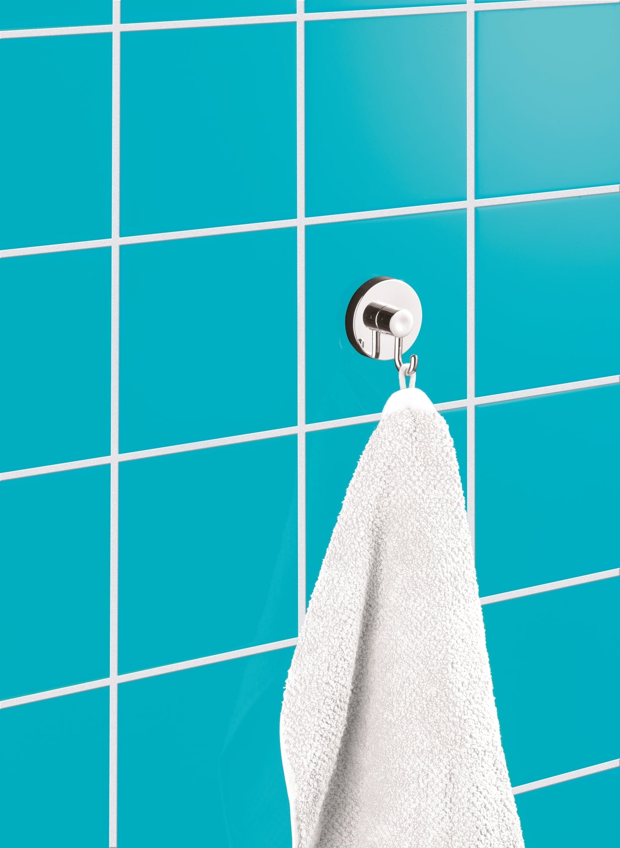 Mehr Ordnung im Badezimmer? Mit den glänzenden Haken gefertigt aus verchromtem Kunststoff (ABS) der Vacuum-Loc® Serie kein Problem. Die runden Haken im praktischen 2er Set eigenen sich optimal als Kleingarderobe im Bad. Das Haken-Set hält den Bademantel, die Handtücher und vieles mehr stets dekorativ griffbereit. Egal, ob im Badezimmer, Gäste-WC und Schlafzimmer oder in der Küche und Garderobe - im gesamten Haushalt machen die genialen Haken eine gute Figur und geben auch Kleidung, Geschirrtücher & Accessoires einen schönen Platz. Das einzigartige Vacuum-Loc® System ermöglicht schnelles, einfaches und sicheres Anbringen der Accessoires auf allen luftundurchlässigen und leicht unebenen Flächen. Das neuartige Vacuum-Loc® System besteht aus einer Pumpe und Befestigungs-Locs, es muss nicht gebohrt oder geschraubt werden, auch Saugnäpfe sind nicht notwendig. Die Montage des Vacuum-Loc® Systems ist mit Hilfe der Pumpe kinderleicht. Durch Absaugen der Luft mittels mitgelieferter Pumpe wird ein Vakuum im Loc erzeugt und die Adapter mit dem Accessoire sind sofort belastbar. Die Vacuum-Loc®s sind beliebig oft repositionierbar und rückstandslos entfernbar. Das Vacuum-Loc® System verfügt über Europäischen Patentschutz und gewährleistet sicheren Halt. Jeder Befestigungs-Loc ist jeweils dauerhaft mit einer Zugkraft bis zu 33 kg belastbar. Damit wird die Krafteinwirkung beschrieben, die in waagerechter Richtung an dem Befestigungs-Loc zieht, also zum Krafterzeuger hin wirkt.