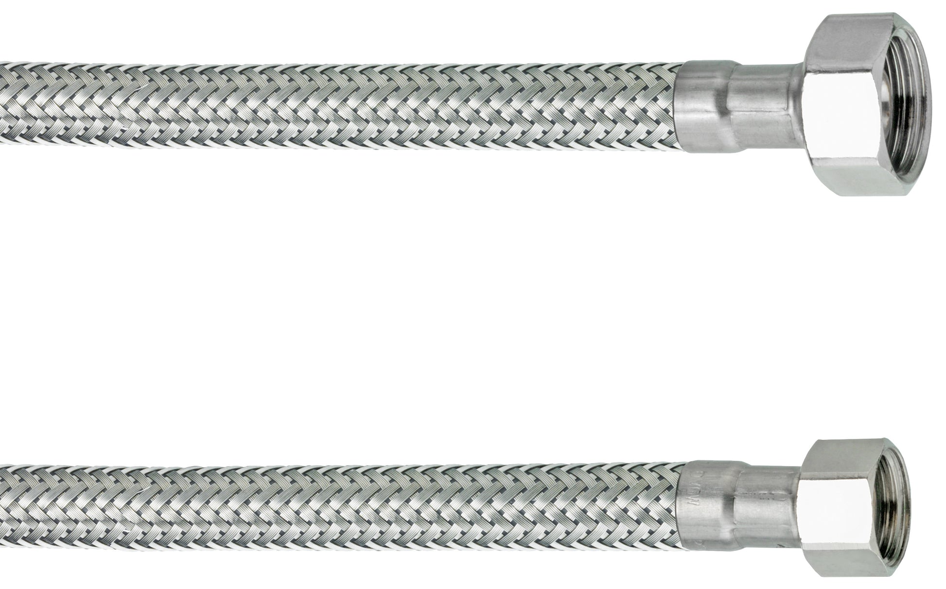 Edelstahl-Umflechtung" Betriebsdruck: max. 10 bar" Betriebstemperatur: max. + 90° C" Beitseitig Überwurfmutter Innengewinde" 1/2" IG, 3/8" IG, Länge: 200 mm