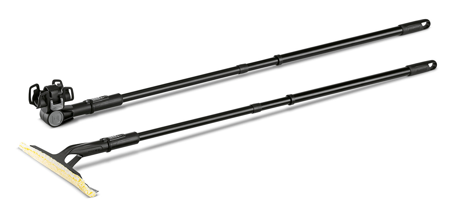 Hohe Fenster, Oberlichter und andere schwer erreichbare glatte Oberflächen reinigen Sie jetzt ganz komfortabel und ohne umständlich auf Leitern steigen zu müssen: Das teleskopierbare Verlängerungsset für unsere Akku-Fenstersauger und den vibrierenden Akku-Wischer macht es möglich. Das Set besteht aus 2 Teleskopstangen, einer mit flexiblem Gelenk versehenen Aufnahme für den Fenstersauger und Akku-Wischer sowie einem Einwischer mit Mikrofasertuch. Bis zu 1,5 Meter zusätzliche Reichweite bietet das Set, sodass Reinigungsarbeiten in Wohnräumen, Bädern oder Wintergärten bis zu einer Höhe von circa 3,5 Metern auch für kleinere Personen mühelos zu bewerkstelligen sind.