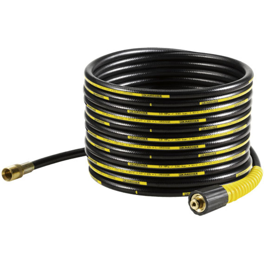 Die 10 Meter lange Hochdruckschlauchverlängerung sorgt für höhere Flexibilität und erweitert den Aktionsradius des Hochdruckreinigers. Einfach zwischen Gerät und Hochdruckschlauch anschließen und schon arbeitet es sich besser. Der robuste DN-8-Qualitätsschlauch ist mit einem Textilgeflecht verstärkt und verfügt über einen Schlauch-Knickschutz sowie einen stabilen Messinganschluss für lange Haltbarkeit. Die Schlauchverlängerung hält einem Druck von bis zu 160 Bar stand und ist für Temperaturen bis 60 °C ausgelegt. Der Verlängerungsschlauch lässt sich selbstverständlich auch im Zusammenhang mit Reinigungsmitteln verwenden. Geeignet für alle Kärcher Consumer-Hochdruckreiniger der Klassen K 2-7 vor Baujahr 2010.