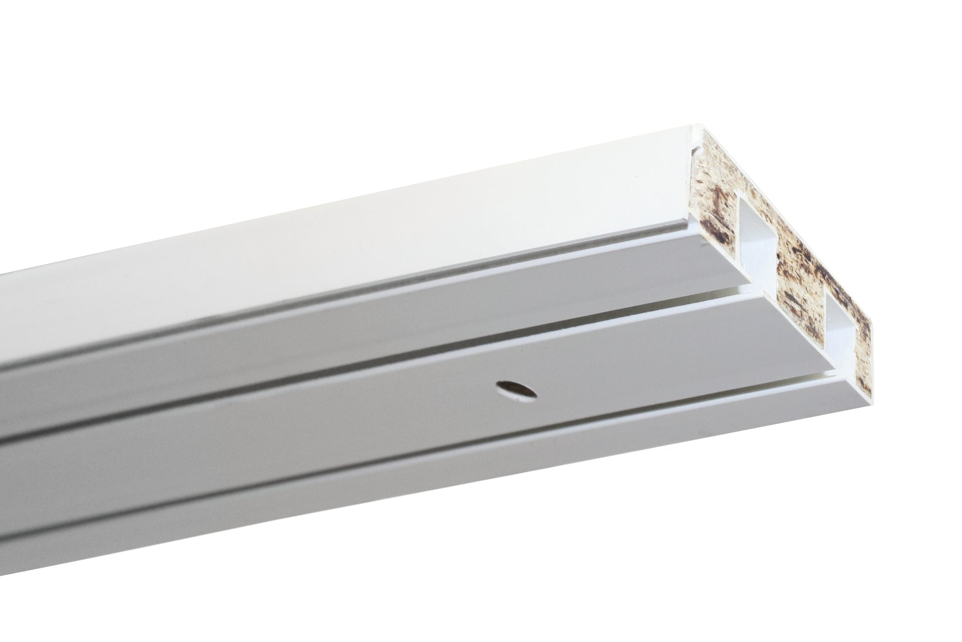 Vorhangschiene, Holz/Kunststoff, 2-läufig mit Profil für Blendenbefestigung