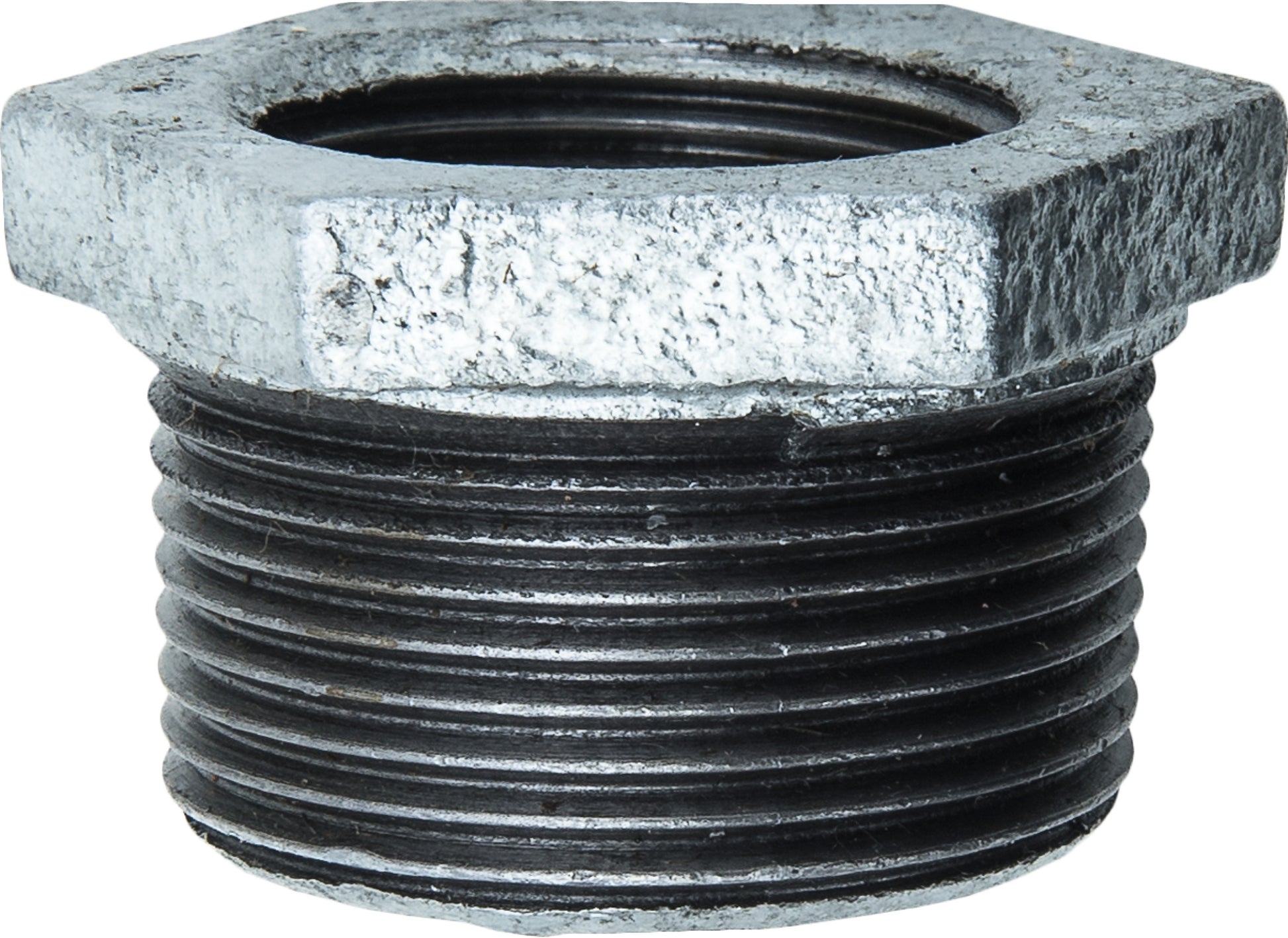 Temperguss" Verzinkt" Mit 1 Außengewinde" Mit 1 reduziertem Innengewinde" Nach DIN EN 10242 Design-Symbol A gefertigt" Konisches Gewinde nach DIN EN 10226-1 (ISO 7-1) metallisch dichtend" 1/2" AG, 3/8" IG