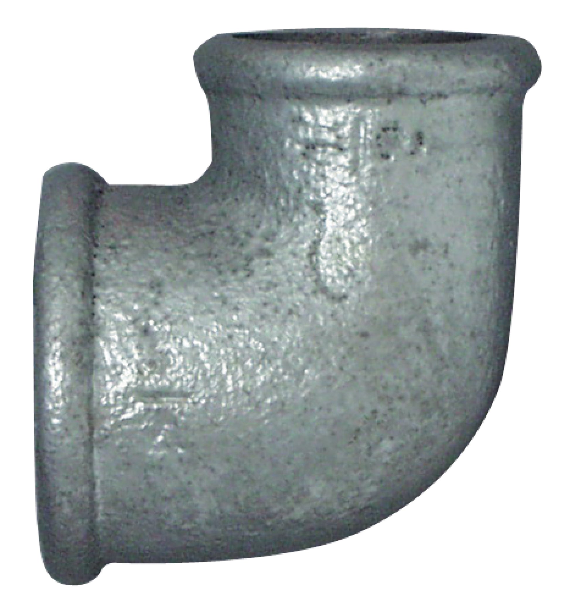 Temperguss" Verzinkt" 90°" Reduziert" Mit 2 Innengewinden" Nach DIN EN 10242 Design-Symbol A gefertigt" Konisches Gewinde nach DIN EN 10226-1 (ISO 7-1) metallisch dichtend "1" IG, 3/4" IG