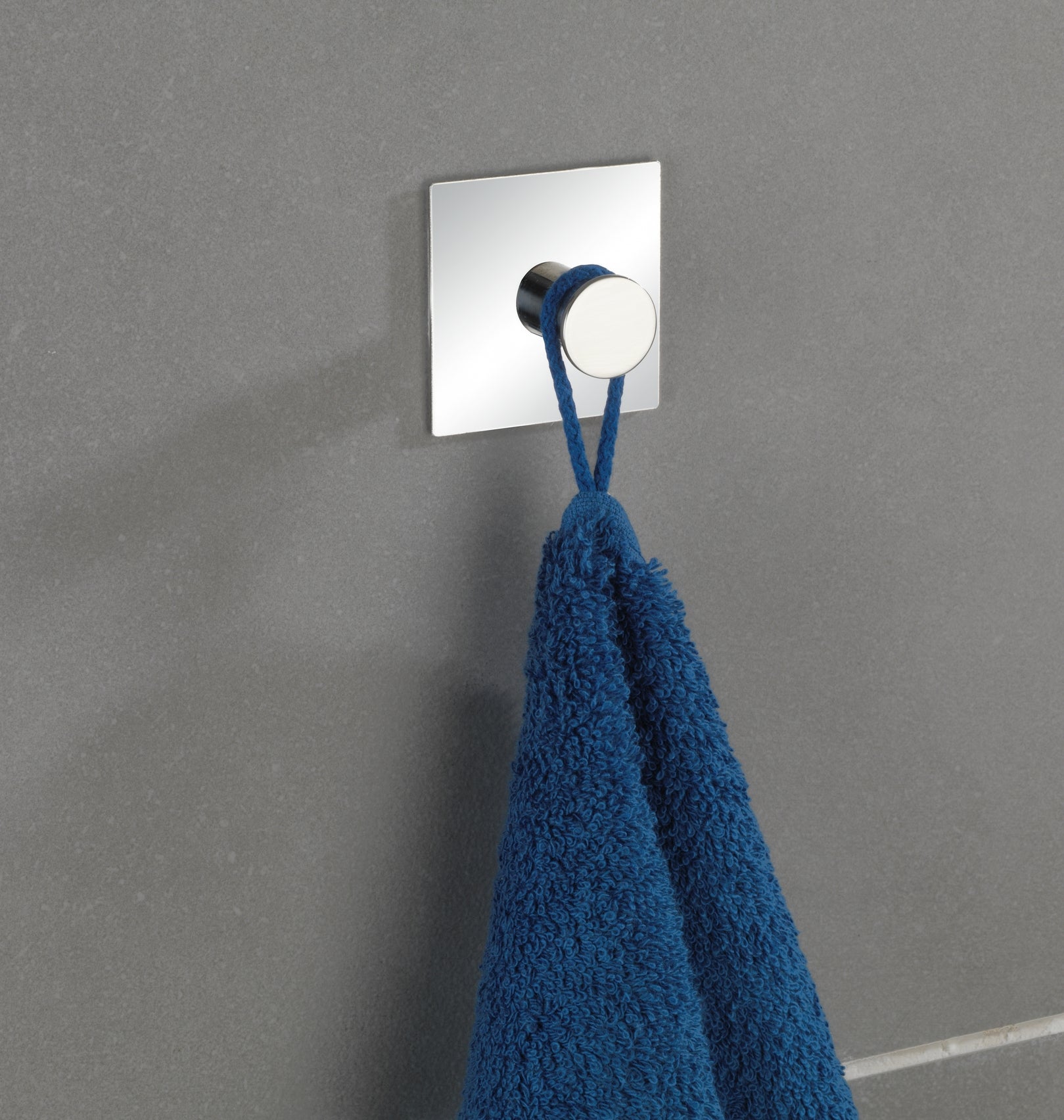 Der universelle Wandhaken aus Edelstahl sorgt für mehr Ordnung in Ihrem Heim. Ob im Bad oder in der Küche, dieser Wandhaken hält was er verspricht, ob Handtücher, Bademäntel oder andere Kleidungsstücke - ideal auf als Garderobenhaken für Jacken und Mäntel. Dank der schnellen und einfachen Montage können Sie den Wandhaken mit geringem Aufwand selbst anbringen – ganz ohne Bohren. Die Rückseite des Wandhakens ist selbstklebend. Nach dem Abziehen der Schutzfolie drücken Sie den Haken kurz fest an die gewünschte Stelle und schon kann er seinen Dienst beginnen. Der hochwertige Handtuchhalter aus Edelstahl bringt sich stylisch und dezent zugleich in Ihr zu Hause ein – ob als Handtuchhalter oder Bademantelhalter, ob als Küchenhaken oder Jackenhaken – egal wo, er ist vielseitig im ganzen Haushalt verwendbar - auch für Räume mit hohem Feuchtigkeitsanteil wie beispielsweise im Badezimmer, geeignet. Platzsparend: Der Wandhaken ist so konzipiert, dass er kaum Platz in Anspruch nimmt, zugleich aber sicher die gewünschten Handtücher und Kleidungsstücke hält. Hergestellt ist der Wandhaken von WENKO aus rostfreiem Edelstahl, er ist selbstklebend und hat die Maße: 5,5 x 5,5 x 3 cm