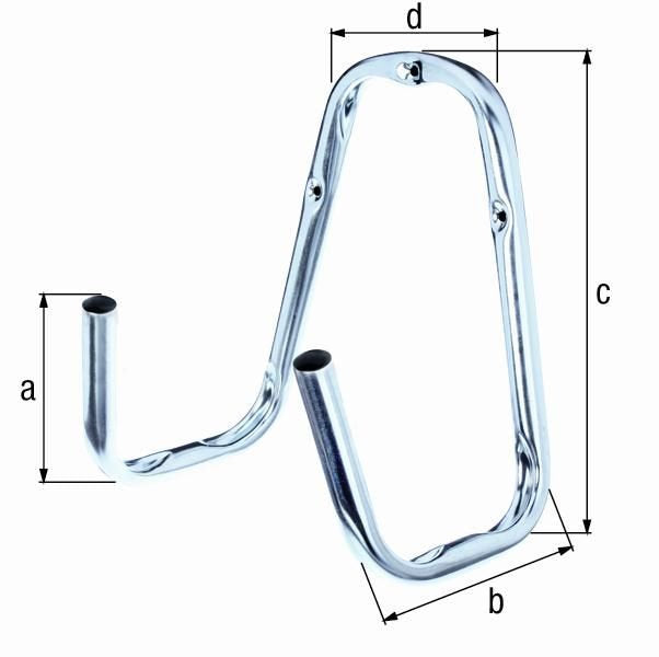 Wandhaken, doppelt abgewinkelt, Material: Stahl roh, Oberfläche: galvanisch blau verzinkt, Höhe Haken: 125 mm, Tiefe: 165 mm, Gesamthöhe: 250 mm, Breite oben: 130 mm, Belastung max.: 40 kg, Gesamtbreite: 250 mm, Rohr-#: 18 mm