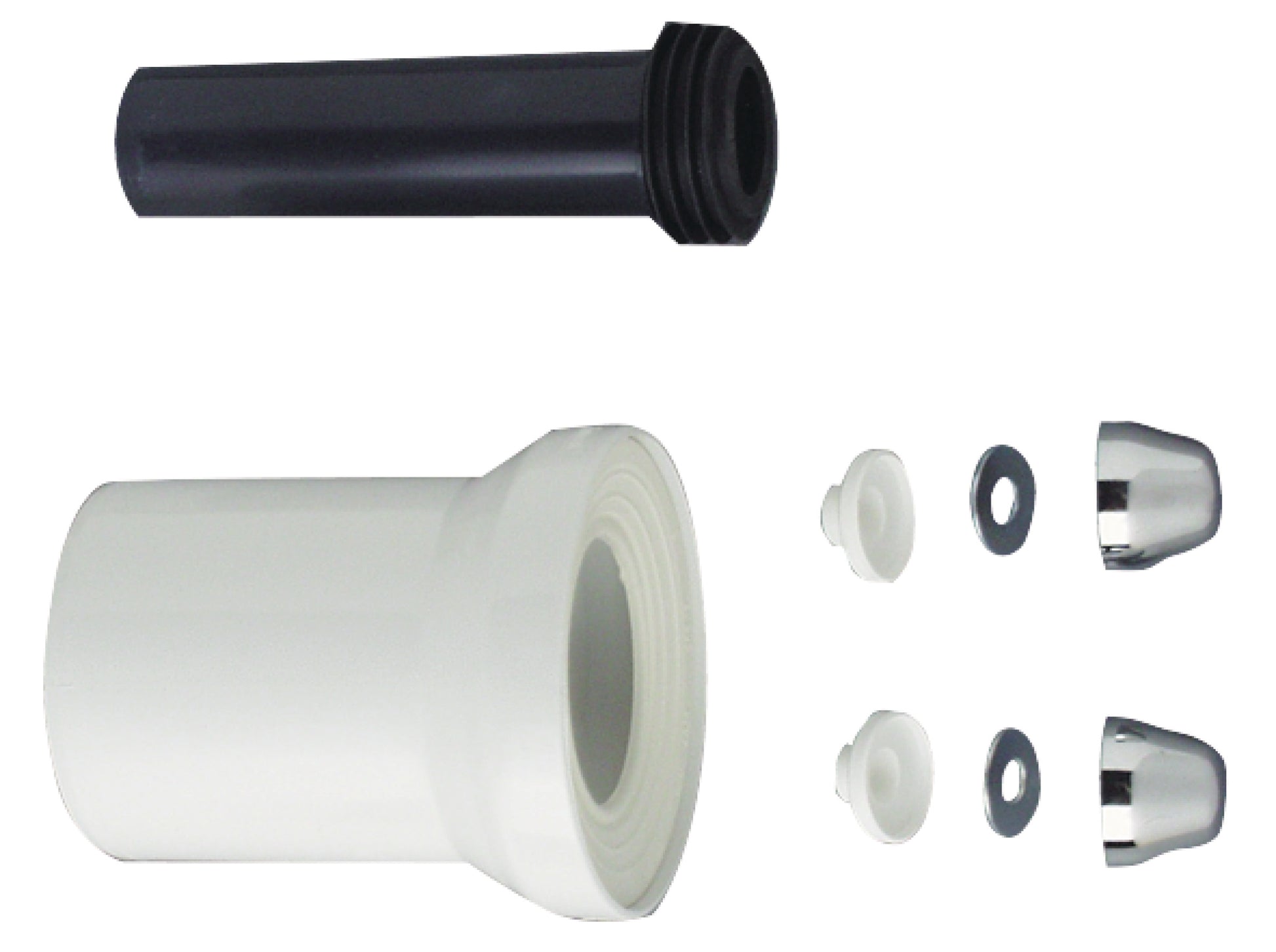 Kunststoff" für wandhängendes WC" Spülrohrverbinder für Anschlussrohr " Einlaufstutzen 55 mm" WC-Anschlussstutzen " Montagesatz" Kappen chrom
