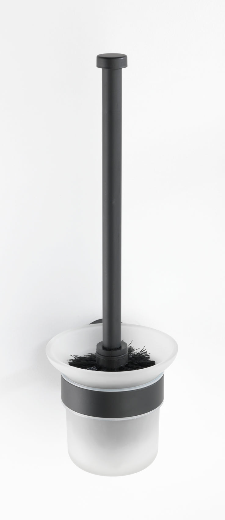 - Hygienische WC-Bürste mit schwarzem, auswechselbarem Bürstenkopf mit Ø 7,5 cm