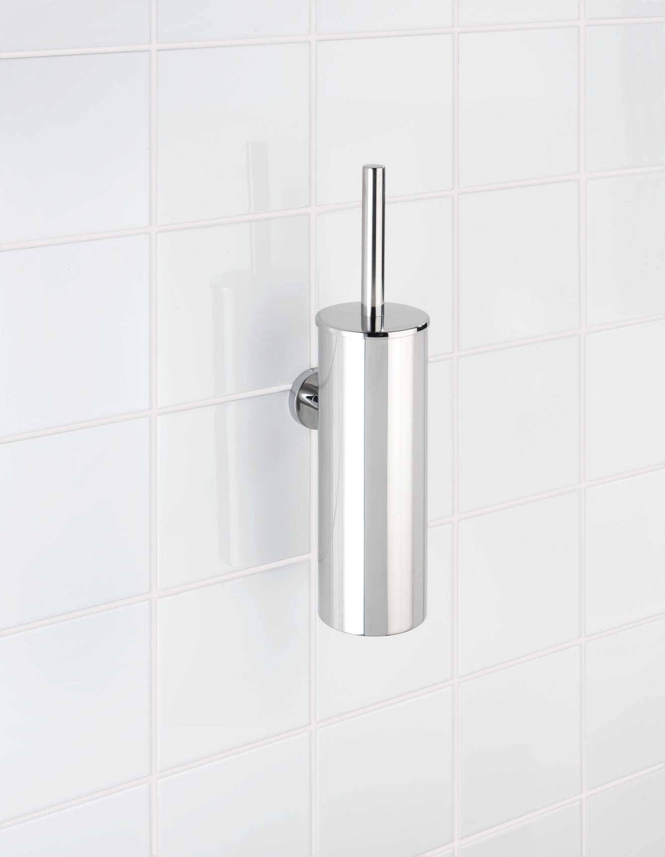 Die hochwertige WC-Garnitur aus der Serie Bosio vereint Funktionalität und Qualität. Mit der eleganten Garnitur wird das WC gründlich gereinigt. Die Bürste gewährleistet durch ihre strapazier- und anpassungsfähigen Borsten eine zuverlässige Nutzung. Der Behälter ist aus rostfreiem Edelstahl gefertigt. Schrauben und Dübel zur Wandbefestigung sowie die WC-Bürste mit schwarzem, auswechselbarem Bürstenkopf mit 7,5 cm Durchmesser sind im Lieferumfang enthalten. Alternativ ist auch eine Befestigung ohne bohren möglich. Separat erhältlich ist das Power-Loc Klebe-Set (21578100). Das Power-Loc Kammer-Klebesystem zeichnet sich durch extrem festen Halt auf allen tragfähigen Oberflächen, z.B. Fliesen, Naturstein, Glas, Beton, Metall, Holz und vielen Kunststoffen aus. Das Befestigungssystem hält problemlos auch auf rauen und leicht unebenen Oberflächen.