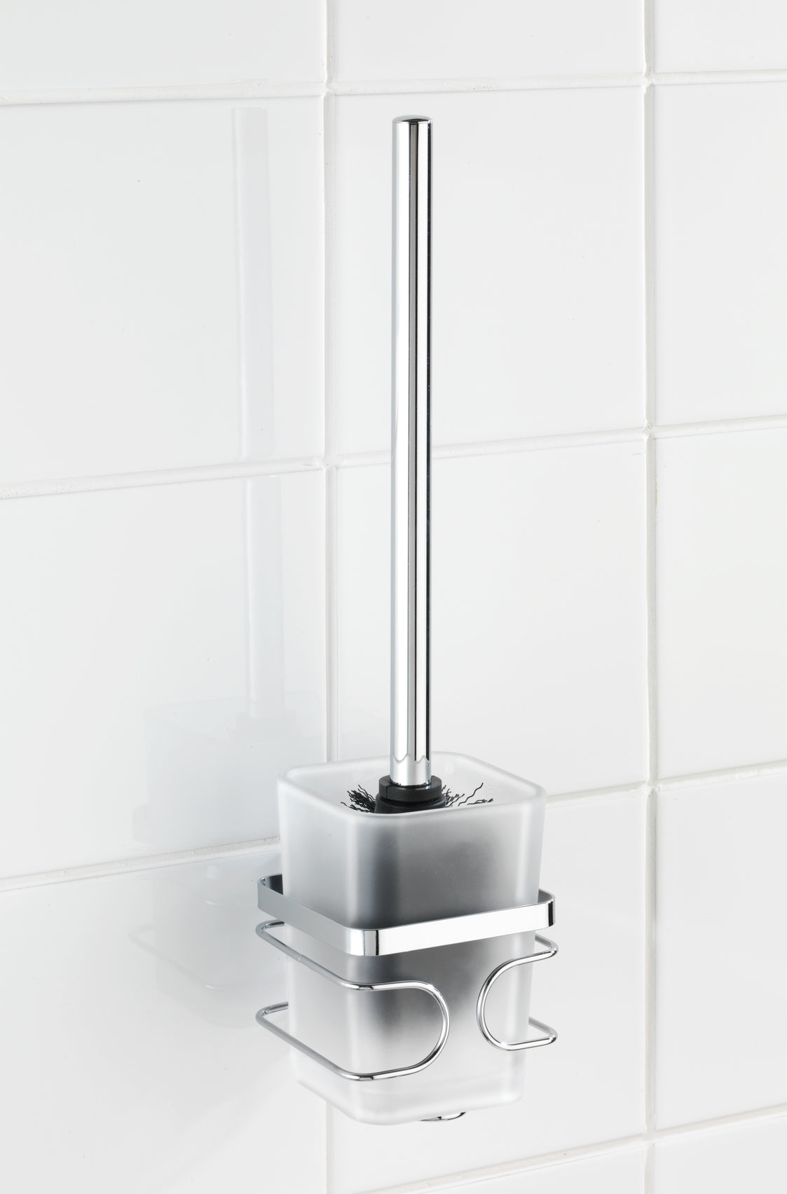 Die Bad-Accessoire Serie Premium ist aus glänzendem, rostfreiem Edelstahl hergestellt. Die Bürste gewährleistet durch ihre strapazier- und anpassungsfähigen Borsten eine zuverlässige Nutzung. Der satinierte Behälter ist abnehmbar und mit einer griffigen Soft-Touch Beschichtung versehen. Im Lieferumfang ist eine WC-Bürste mit schwarzem, auswechselbarem Bürstenkopf von Ø 7,5 cm enthalten sowie Schrauben und Dübel. Alternativ bietet das System zusätzlich 3 weitere Befestigungsmöglichkeiten - ohne bohren - an. Separat erhältlich sind diese Adapter: Variante 1: Vacuum-Loc Adapter Das Vakuum-Saugsystem ermöglicht schnelles, einfaches und sicheres Anbringen der Accessoires und starken Halt auf allen luftundurchlässigen und unebenen Flächen. Variante 2: Turbo-Loc Adapter Die Turbo-Loc Befestigung ist ein Spezial-Klebepadsystem mit extrem festem Halt auf allen glatten Oberflächen. Variante 3: Power-Loc Adapter Das Power-Loc Kammer-Klebesystem zeichnet sich durch extrem festen Halt auf allen tragfähigen Oberflächen, z.B. Fliesen, Naturstein, Glas, Beton, Metall, Holz und vielen Kunststoffen aus. Das Befestigungssystem hält auf rauem und leicht unebenem Untergrund. Für eine der Varianten ohne bohren, bestellen Sie separat den für Ihre Bedürfnisse entsprechenden Adapter oder nutzen einfach das beiliegende Befestigungsmaterial.