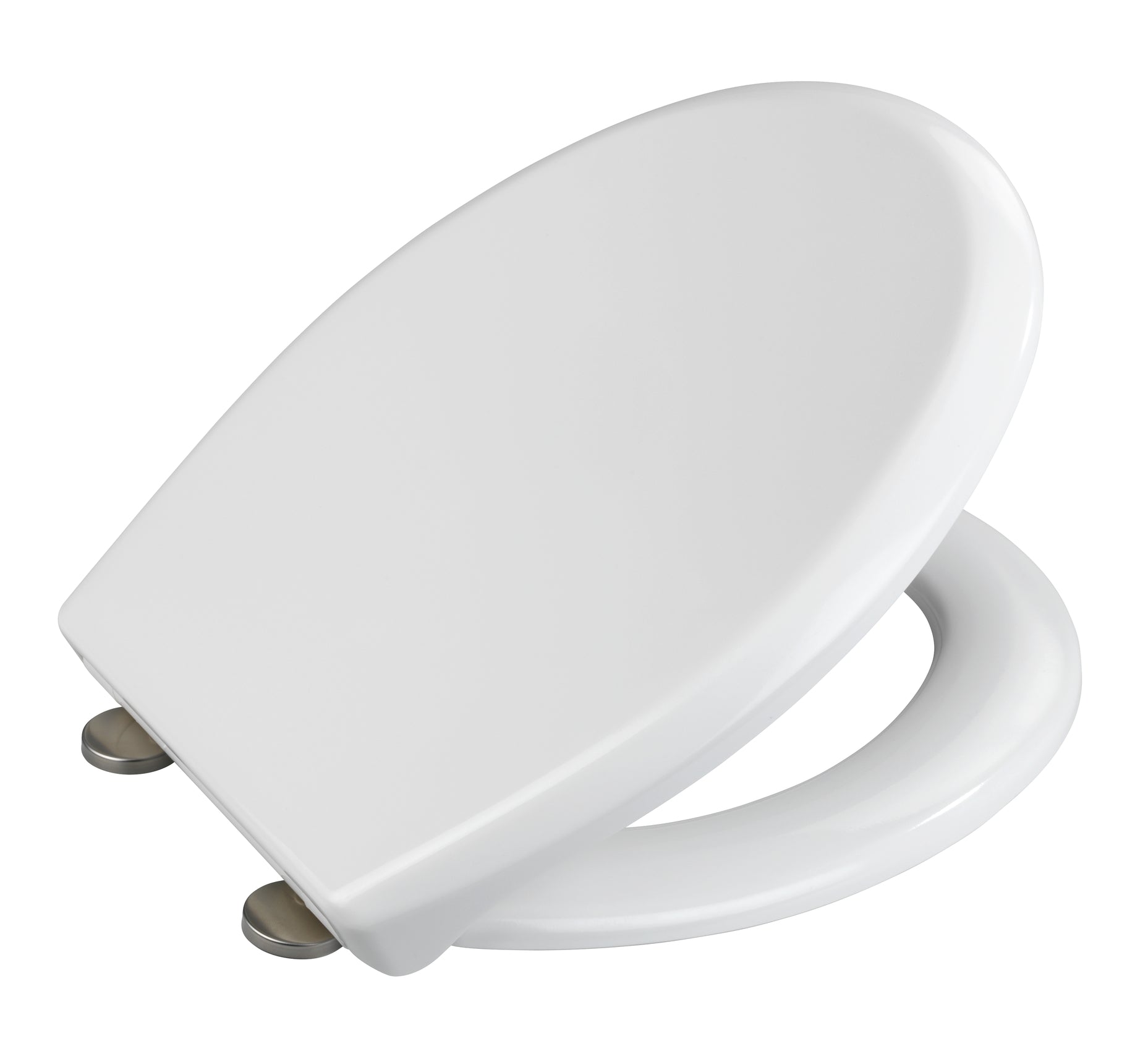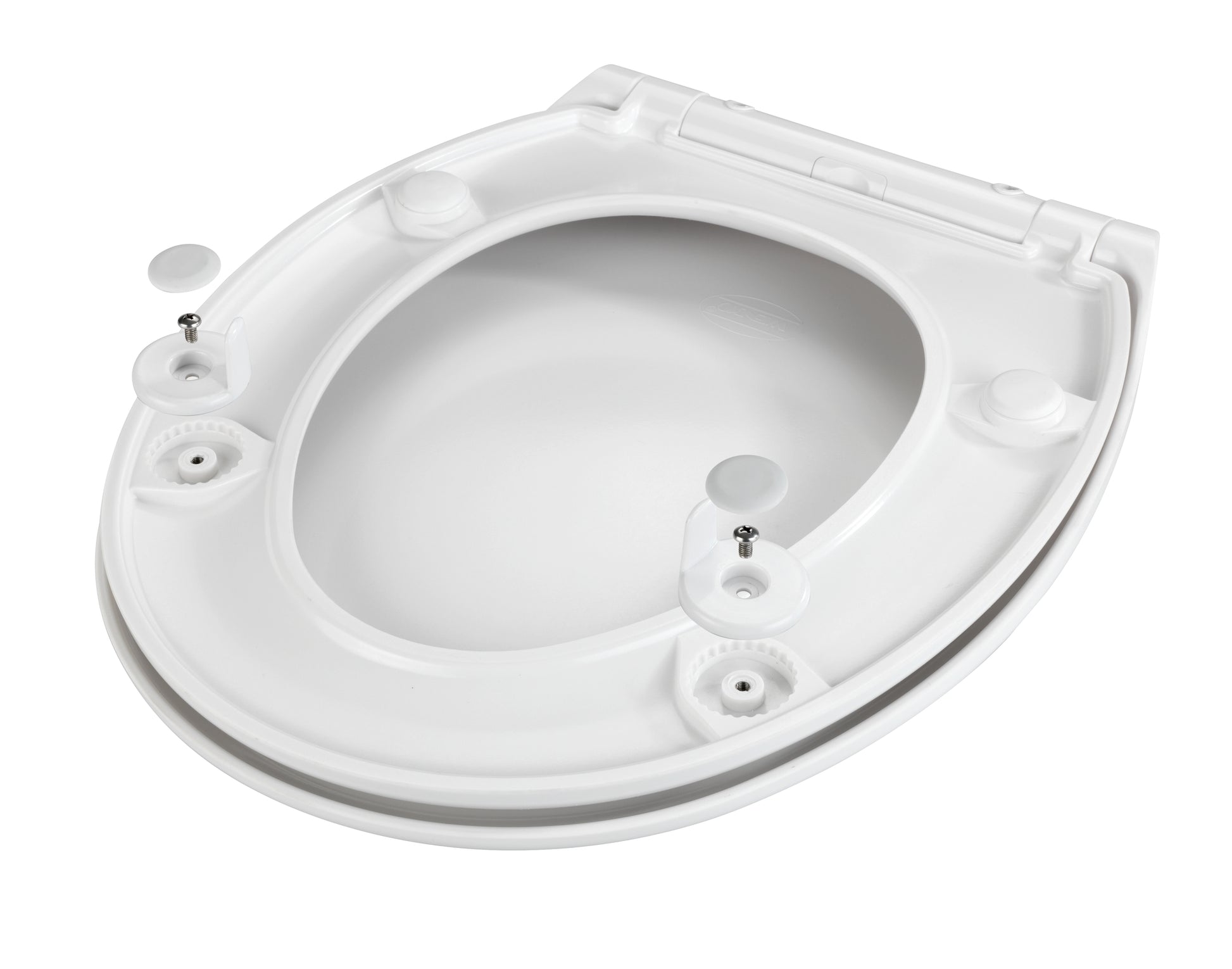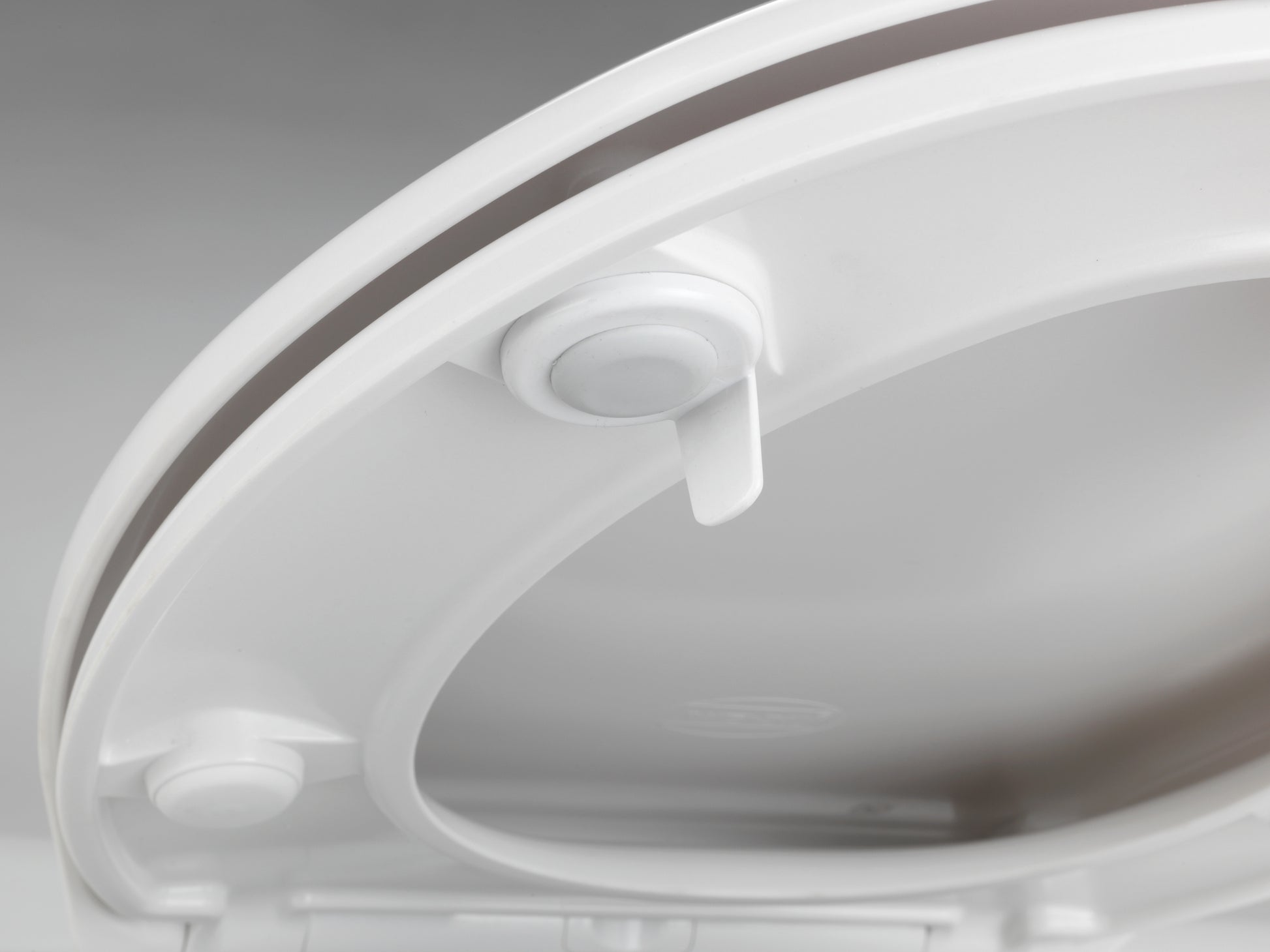 - Klassischer WC-Sitz mit ovaler Deckelform aus antibakteriellem, hochwertigem Duroplast in dezentem Weiß
