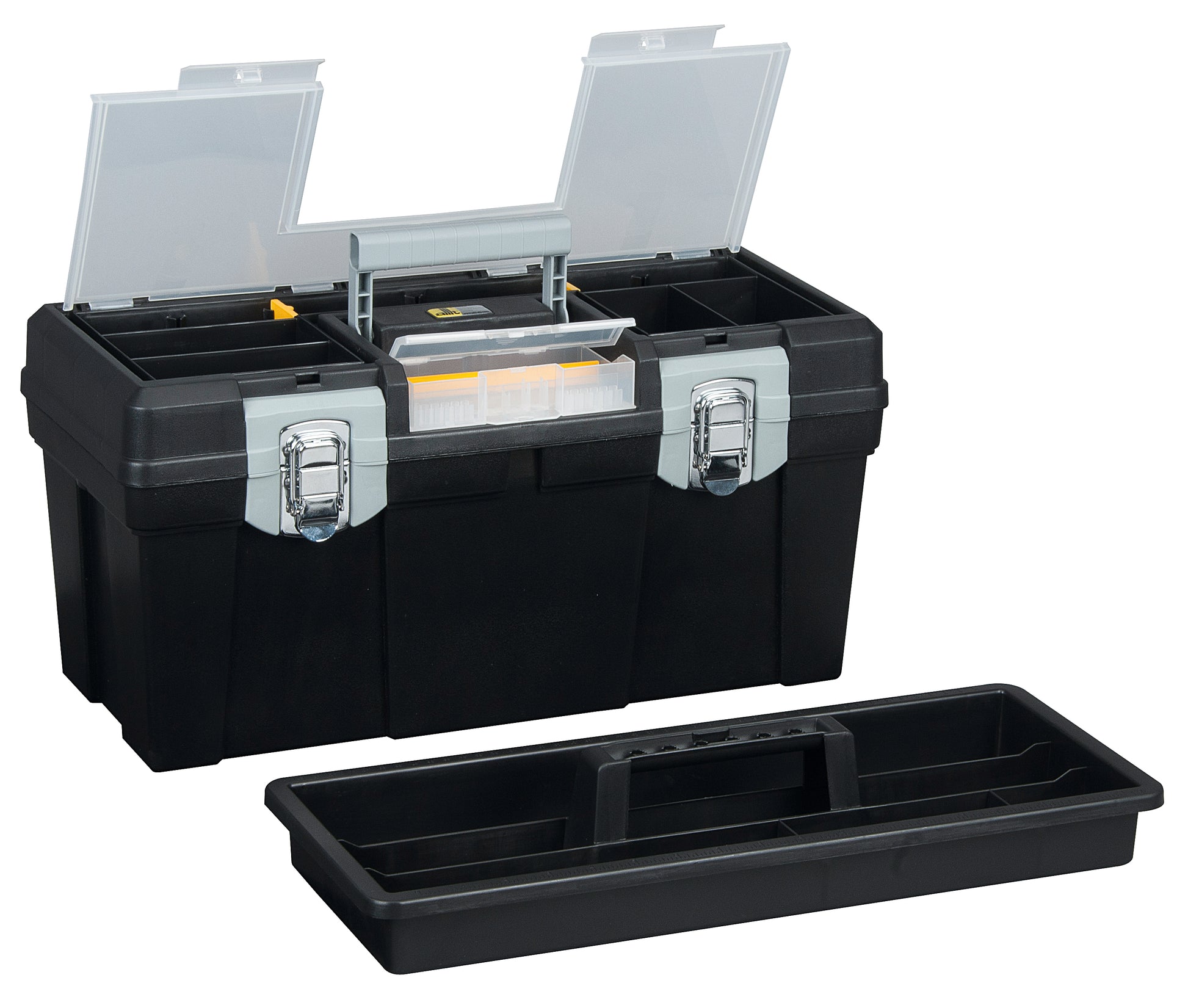 Fester Sortimentskasten mit Trennstegen im Deckel integriert.Herausnehmbarer Tragekasten mit Bithalter und Maßeinteilung (cm/inch) im Koffer.Stabile Spannbügelverschlüsse aus Metall.....