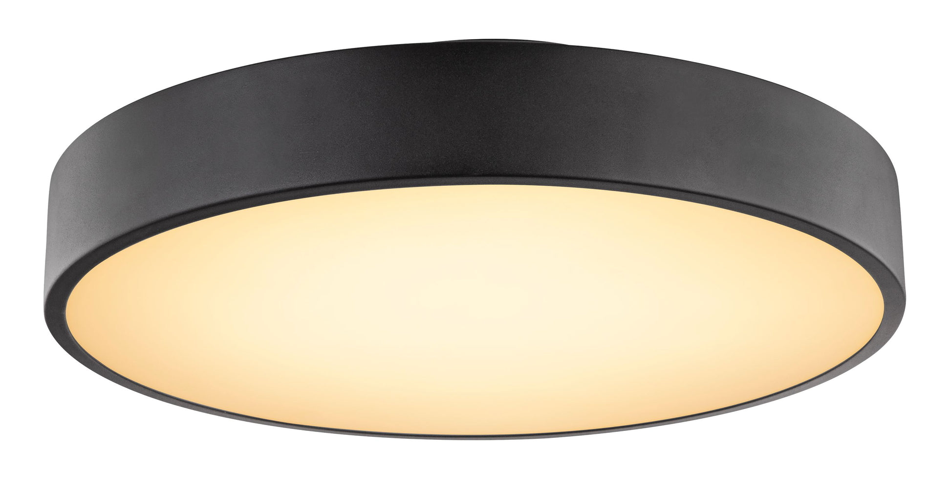 Diese schwarz-matte Deckenleuchte WISS (Ø 40cm), mit Kunststoffrahmen, ist ein Blickfang für Ihre vier Wände. Das weiße Kunststoffglas lässt Ihren Raum in bis zu 1350 Lumen starkem Licht erstrahlen. Je nach Stimmungslage lässt sich das Licht mittels Fernbedienung bequem von warmweißen 3000K bis zu kalten 6000K dimmen. Diese Innenlampe überzeugt mit ihrer Vielseitigkeit. Diese Deckenlampe verfügt über einen Farbwechsler und die Möglichkeit, die Farben zu fixieren. Durch den neutralen Charme ist diese Lampe universell in verschiedenen Räumen Ihres Hauses einsetzbar.