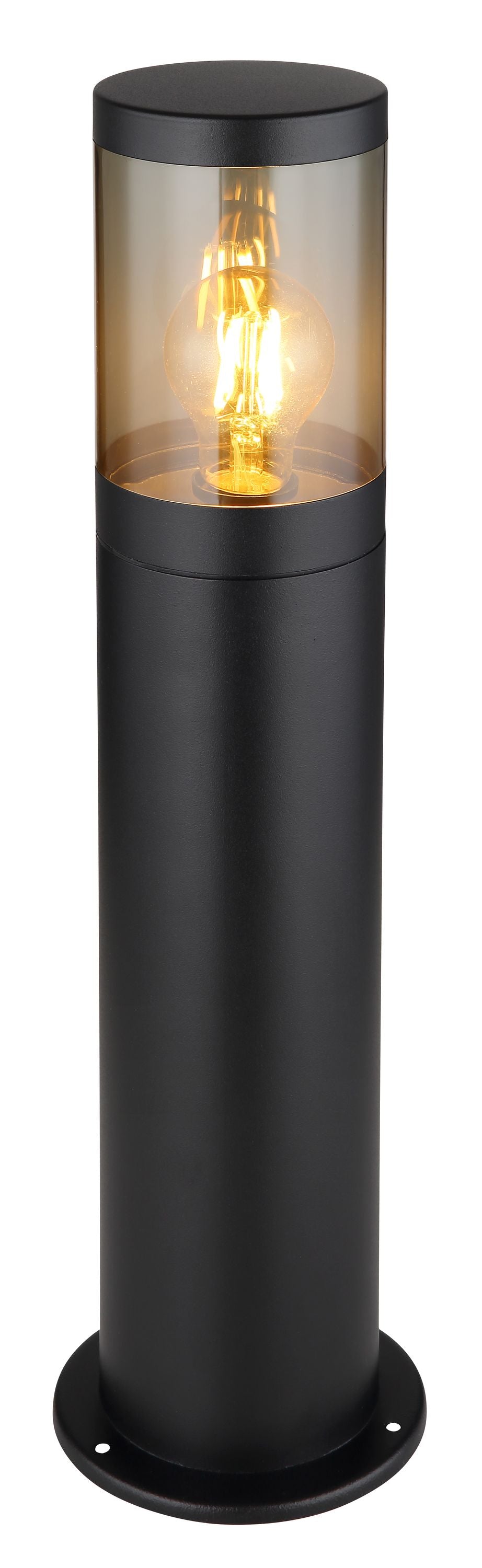 Diese tolle Außenleuchte begeistert durch modernes Design. Aus einem runden Sockel ragt ein 50 cm großes zylinderförmiges Gehäuse mit rauchigem Glas, indem sich eine E27 Fassung befindet. Diese ermöglicht Ihnen bis zu einer maximalen Leistung von 60 Watt, selbst über Lichtfarbe und Helligkeit zu bestimmen. Aufgrund von Langlebigkeit und Stromersparnis empfehlen wir LED Leuchtmittel.