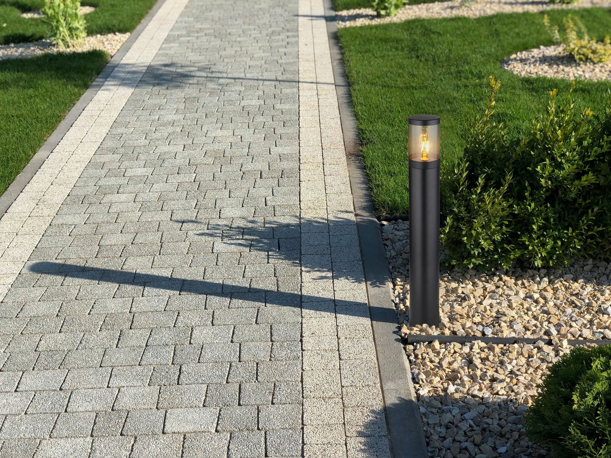 Diese tolle Außenleuchte begeistert durch modernes Design. Aus einem runden Sockel ragt ein 80 cm großes zylinderförmiges Gehäuse mit rauchigem Glas, indem sich eine E27 Fassung befindet. Diese ermöglicht Ihnen bis zu einer maximalen Leistung von 60 Watt, selbst über Lichtfarbe und Helligkeit zu bestimmen. Aufgrund von Langlebigkeit und Stromersparnis empfehlen wir LED Leuchtmittel.