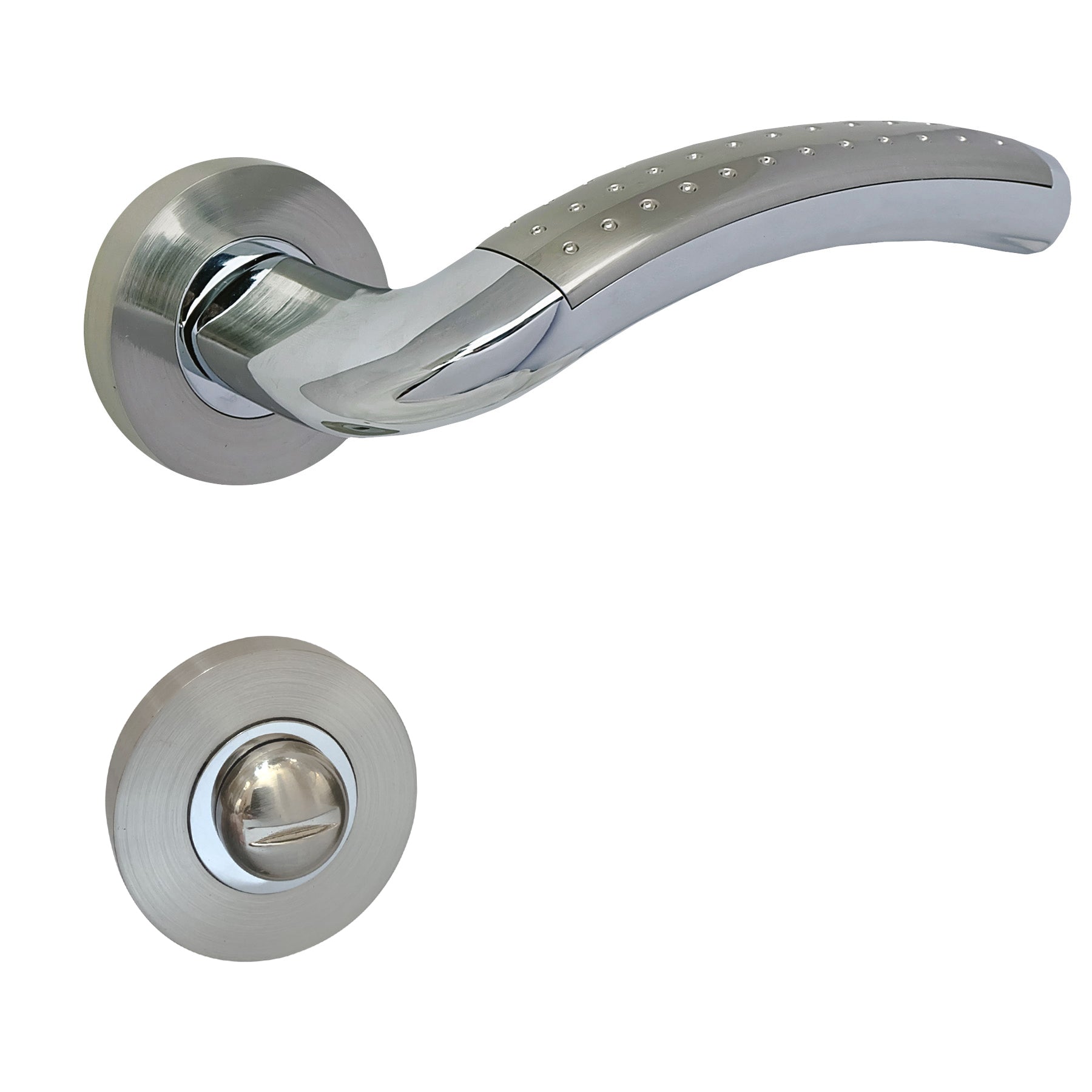 Die Rosettengarnitur Sonata II bietet eine perfekte Mischung aus stilvollem Design und Funktionalität, speziell für WC-Türen. Die hochwertige Kombination aus verchromtem und nickelmattiertem Zamak sorgt für ein modernes, elegantes Erscheinungsbild.