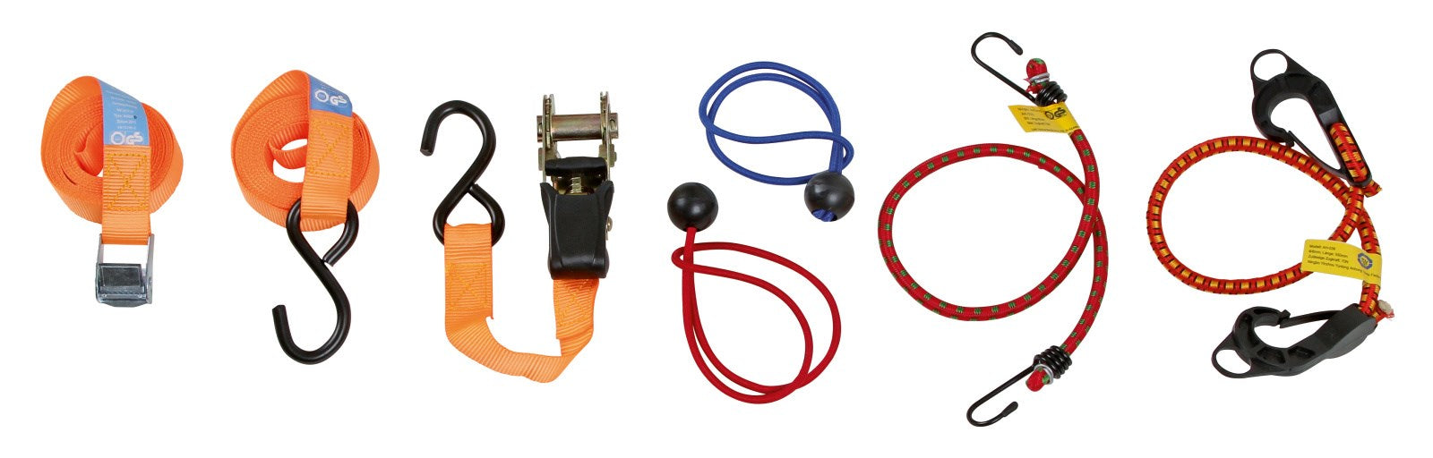 - 4 x Gepäckspanner mit Eisenhaken: Stabile Expander mit einem Durchmesser von 8,0 mm und einer Länge von 60 cm. Jeder Spanner hat eine Haltekraft (LC) von 70 N. Die robusten Eisenhaken gewährleisten einen sicheren Halt.