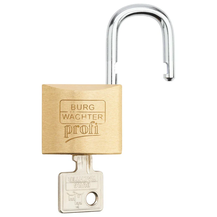 Der Bügel des Schlosses ist stahlhart und außerdem doppelt verriegelt. Das Innere vom Vorhängeschloss 116 mit dem Präzisions-Schließwerk ist dank des Messinggehäuses optimal vor Rost geschützt.